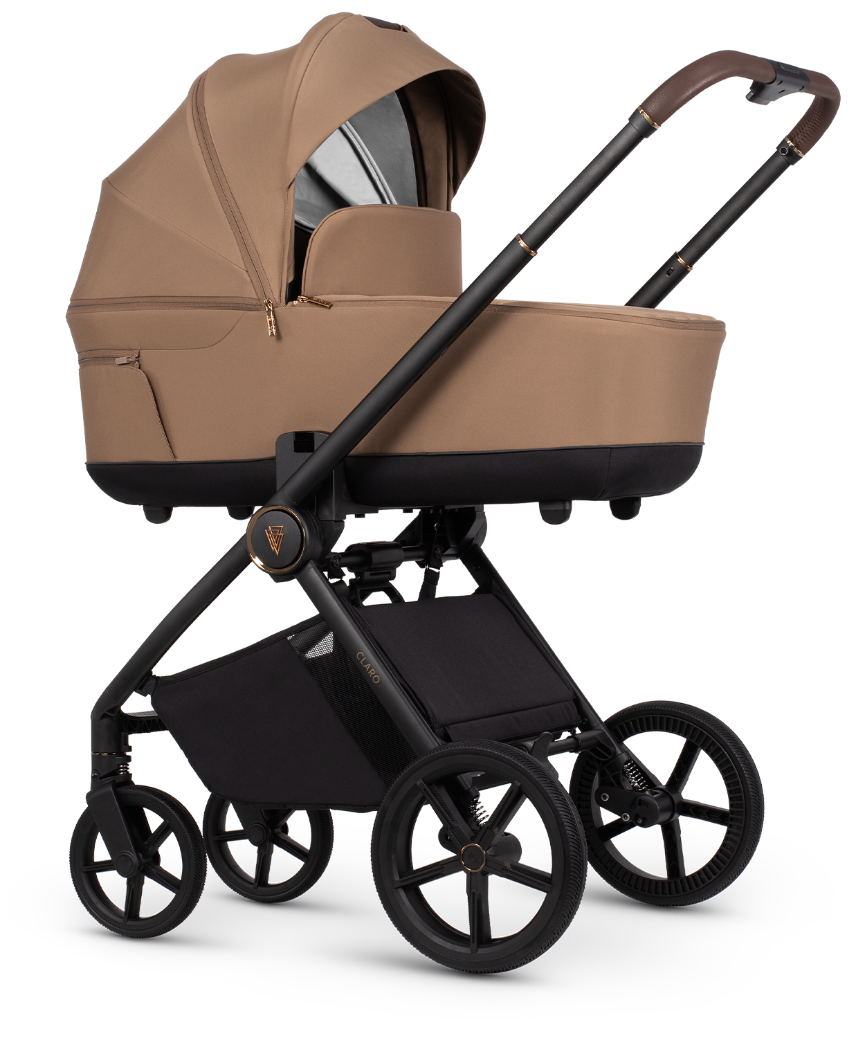 Het frame van de Claro is gemaakt van hoogwaardig aluminium, wat zorgt voor een lichtgewicht maar robuuste constructie. De onderkant van de reiswieg is vervaardigd van EPP-materiaal, dat waterafstotend, UV-bestendig en hittebestendig is.