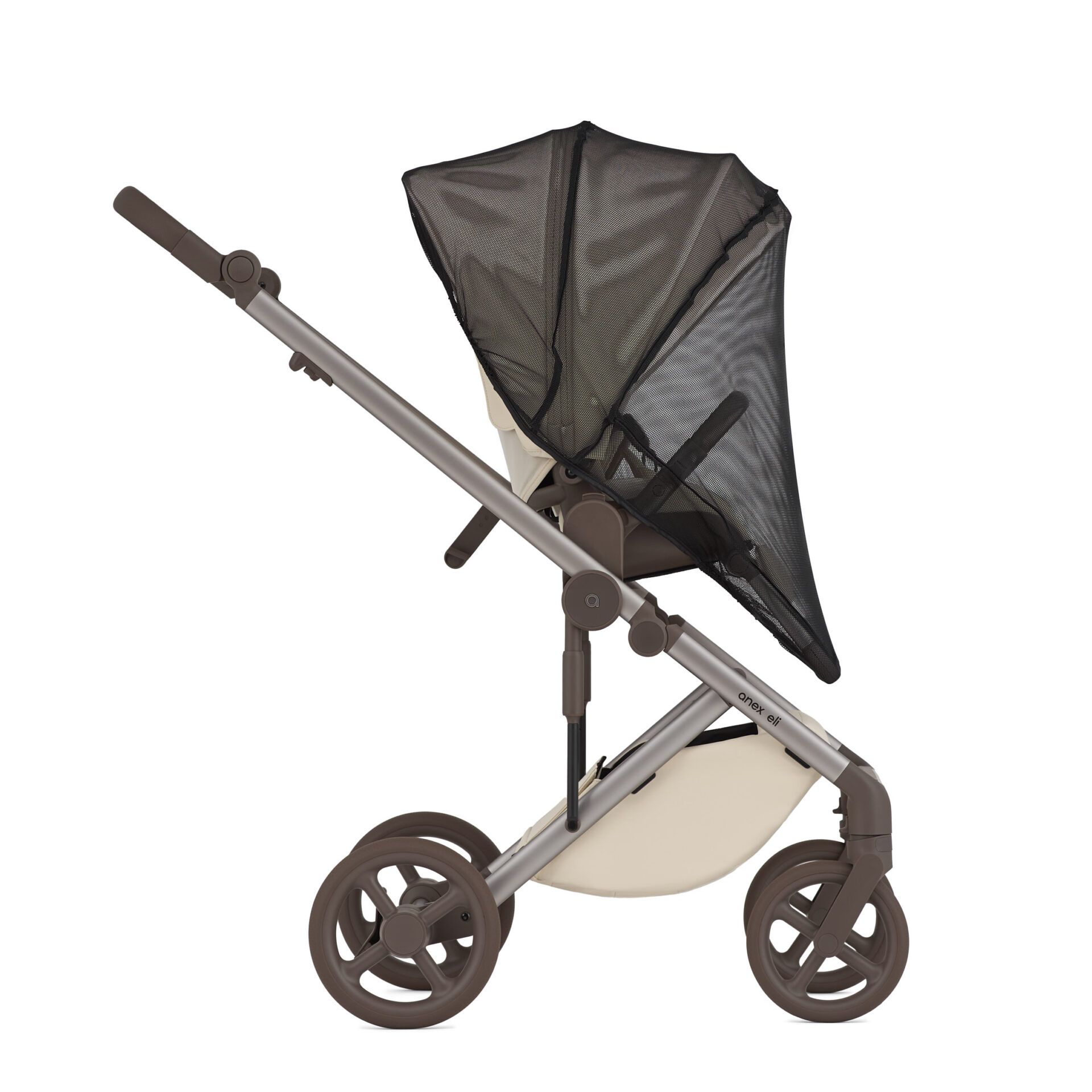 Bij Anex staat goed ontwerp gelijk aan duurzaamheid. De Eli kinderwagen belichaamt deze filosofie met zijn verfijnde productieproces voor de wielen, het gebruik van 100% recyclebaar EPP-materiaal voor de reiswieg, en de integratie van antibacteriële stoffen.