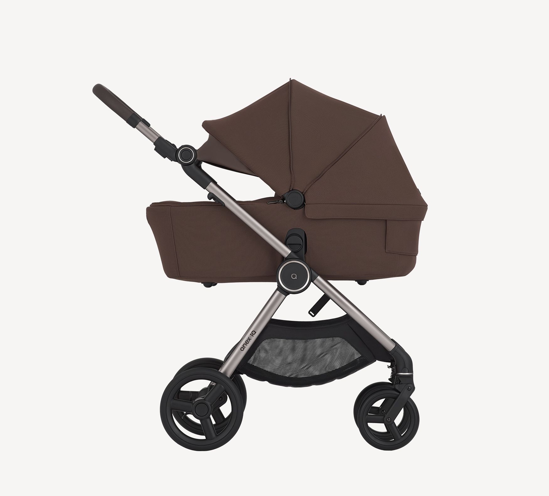 De Anex IQ is eenvoudig in te klappen en mee te nemen, of je nu de kinderwagen gebruikt in de stad, op reis, of gewoon thuis opbergt. De reiswieg past zelfs in je handbagage, en het frame is compact genoeg om in vrijwel elke auto of kast te passen.