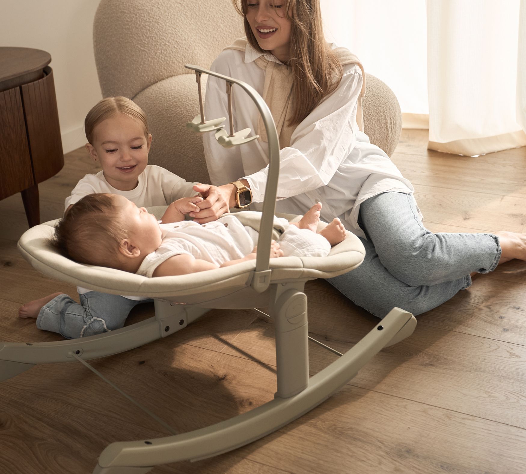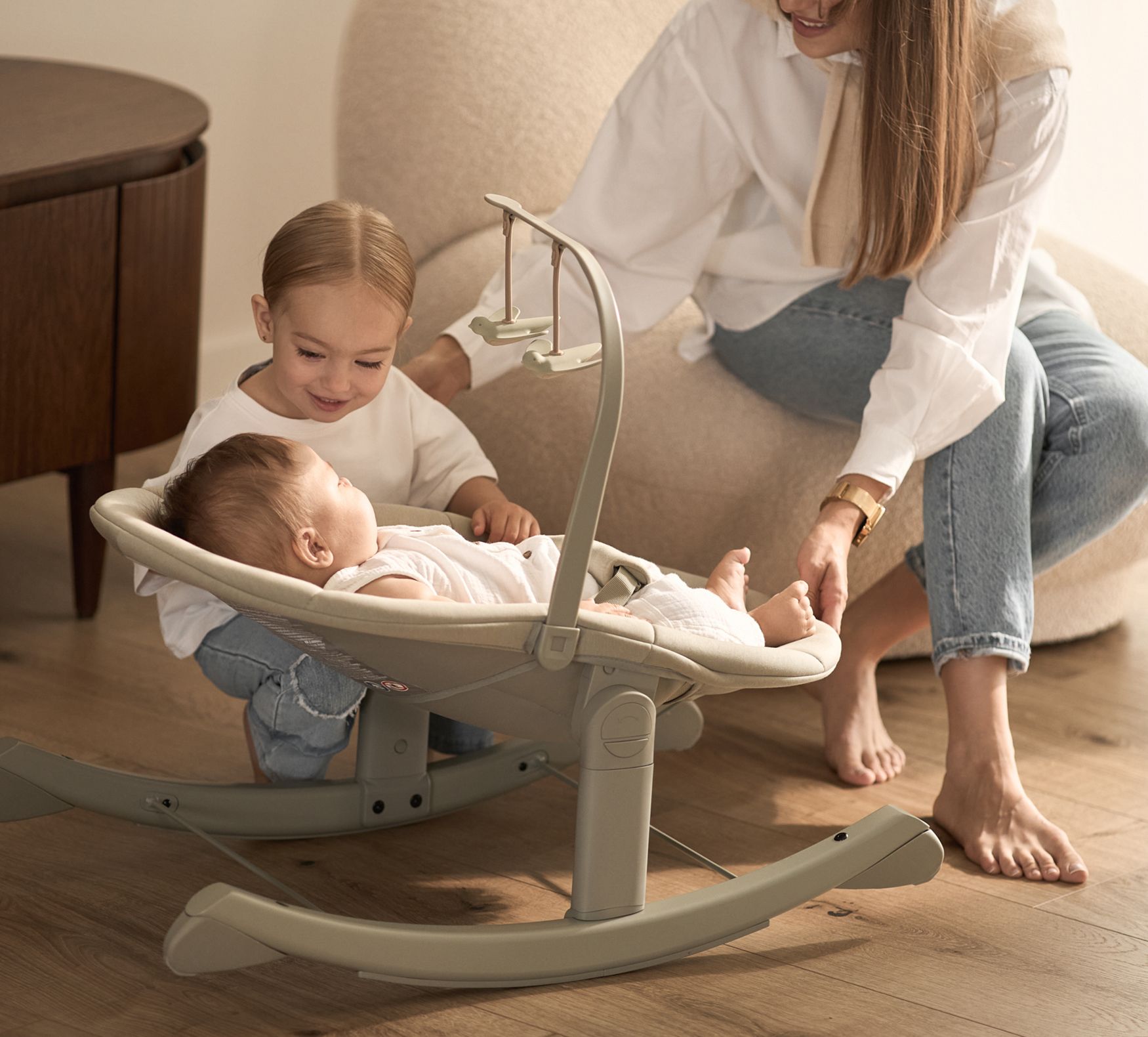 • Biedt een zachte, rustgevende schommel wanneer beweging troost biedt, en blijft stabiel wanneer je baby rust nodig heeft. Altijd afgestemd op wat op dat moment comfortabel is.