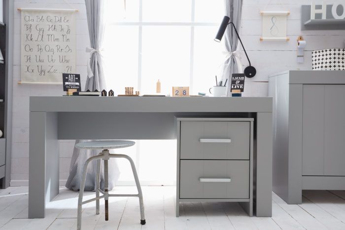 Het bureau uit de Calmo collectie is ideaal als je kleuter of kind naar school gaat. Het is mogelijk om een kast met 2 lades onder heb bureau te plaatsen. Deze kast is apart verkrijgbaar.