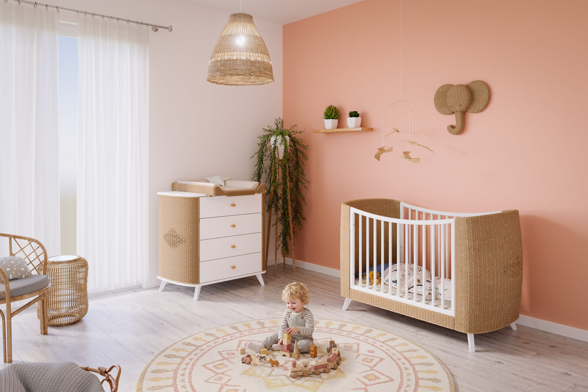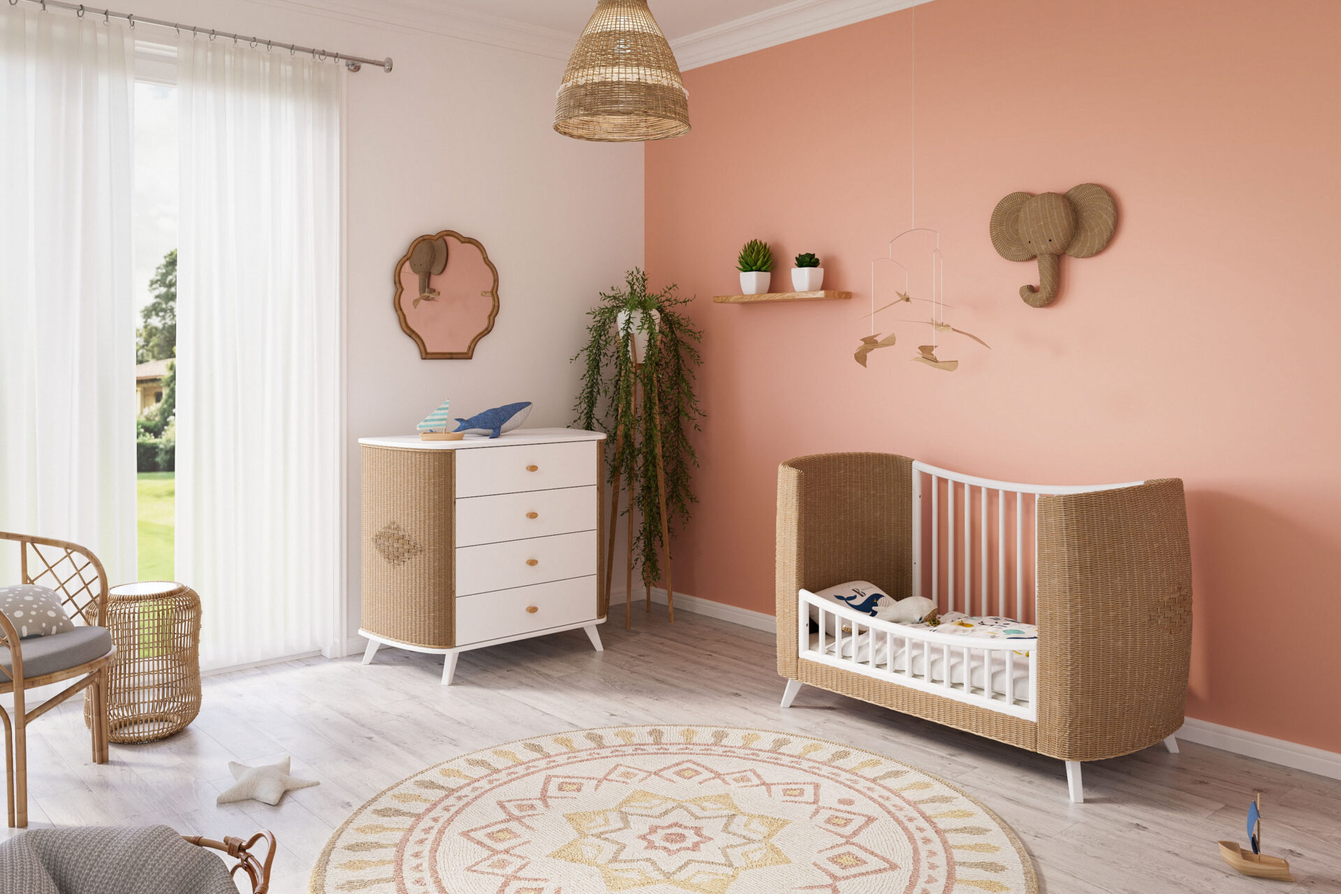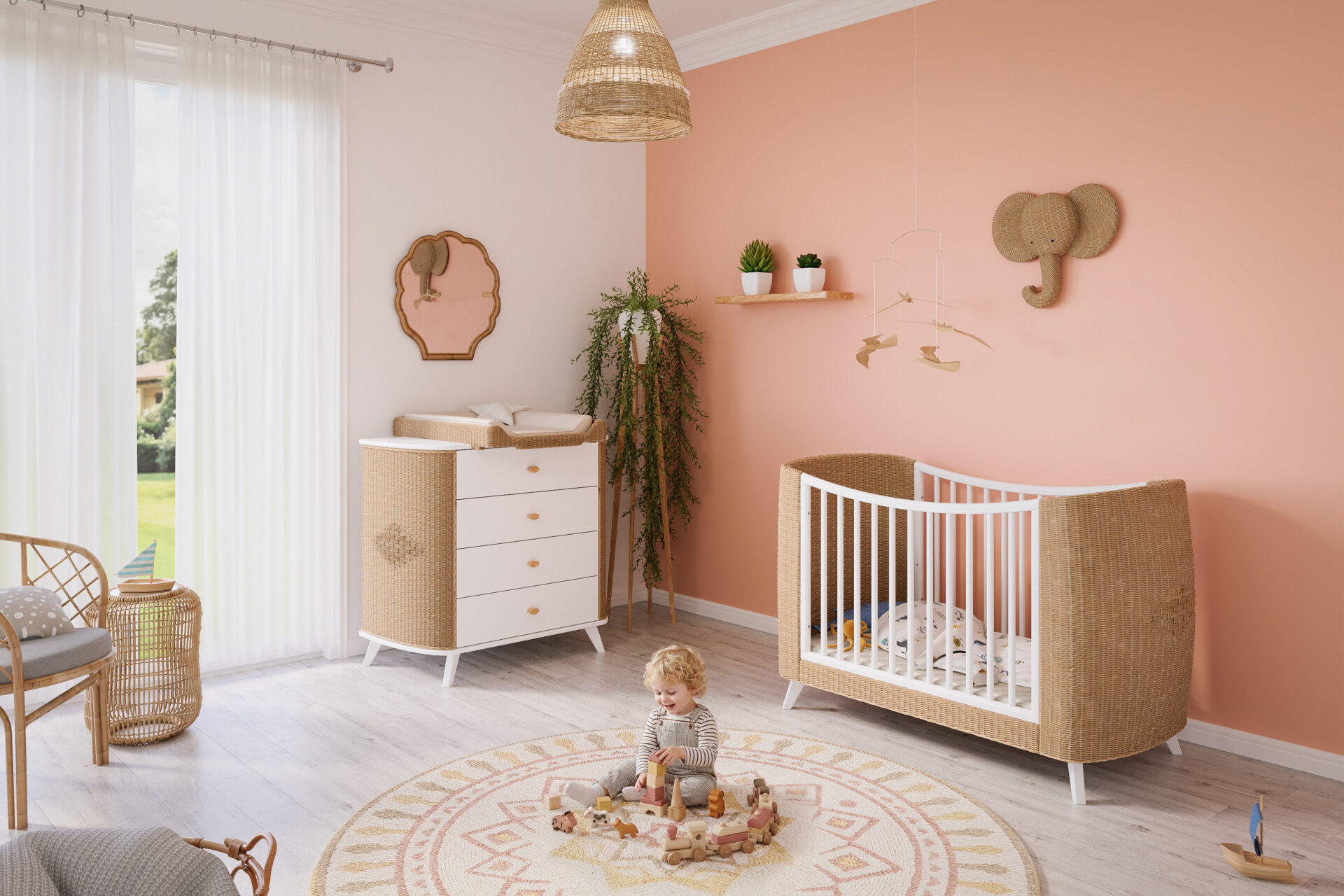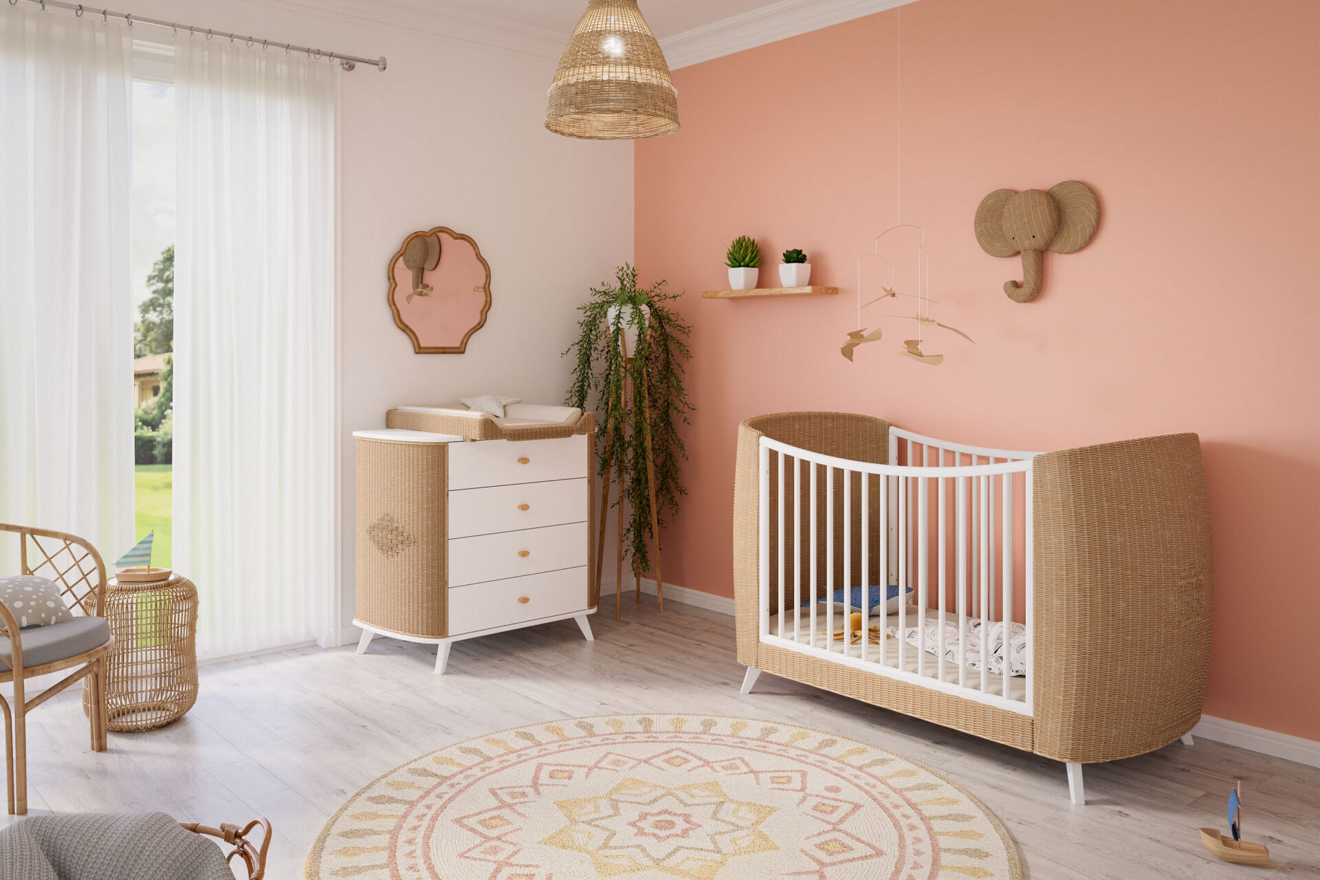 Babykamer Coquillage met ledikant 60 x 120 cm en commode met bladvergroter