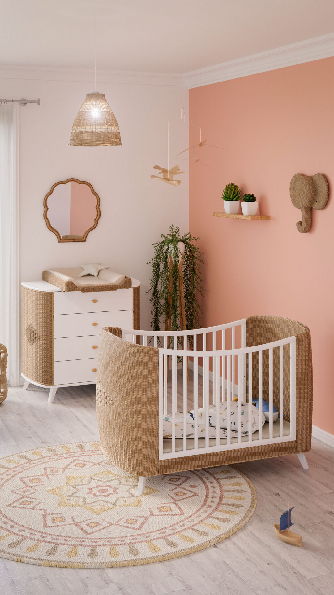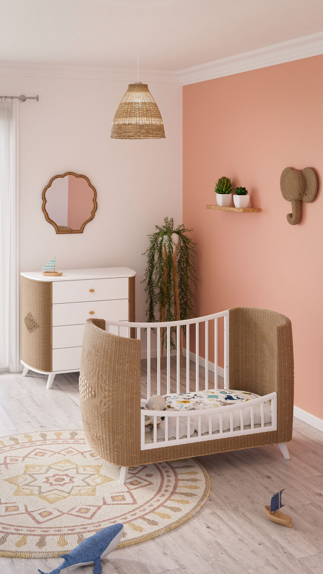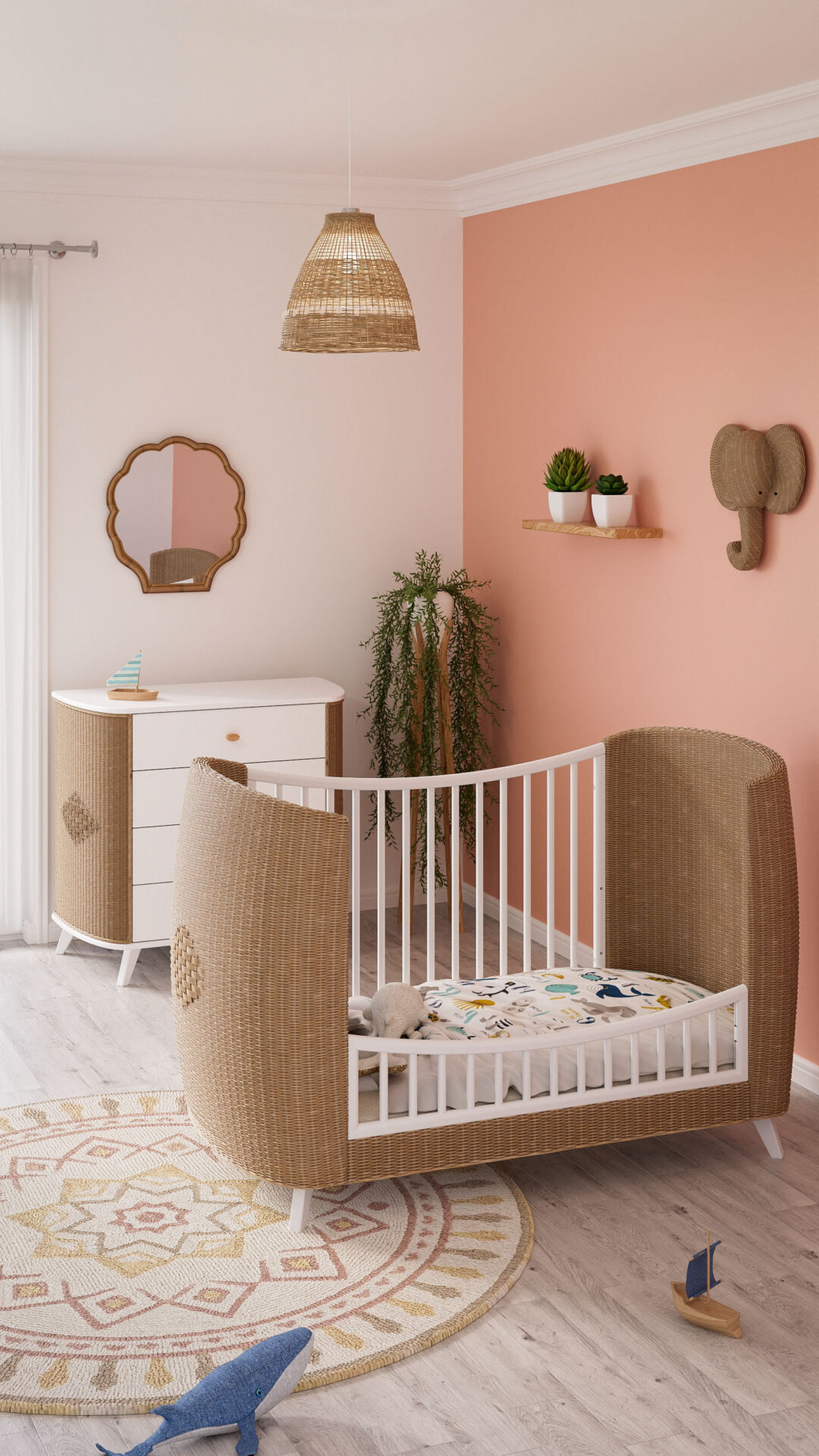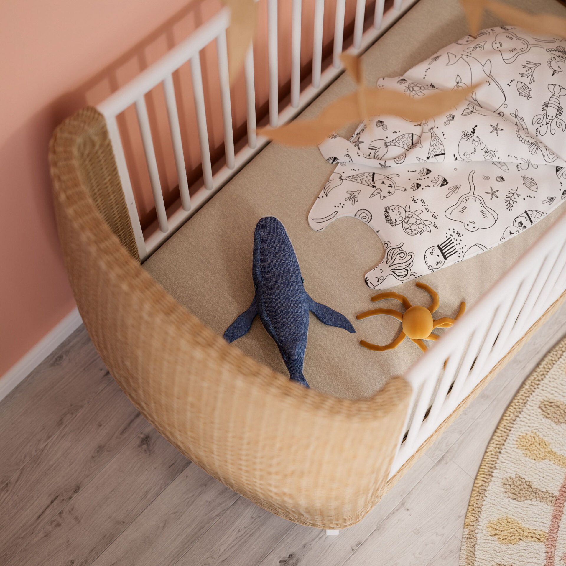 Babykamer Coquillage met ledikant 60 x 120 cm en commode met bladvergroter