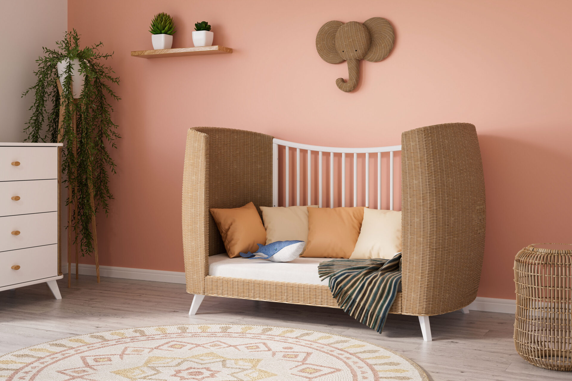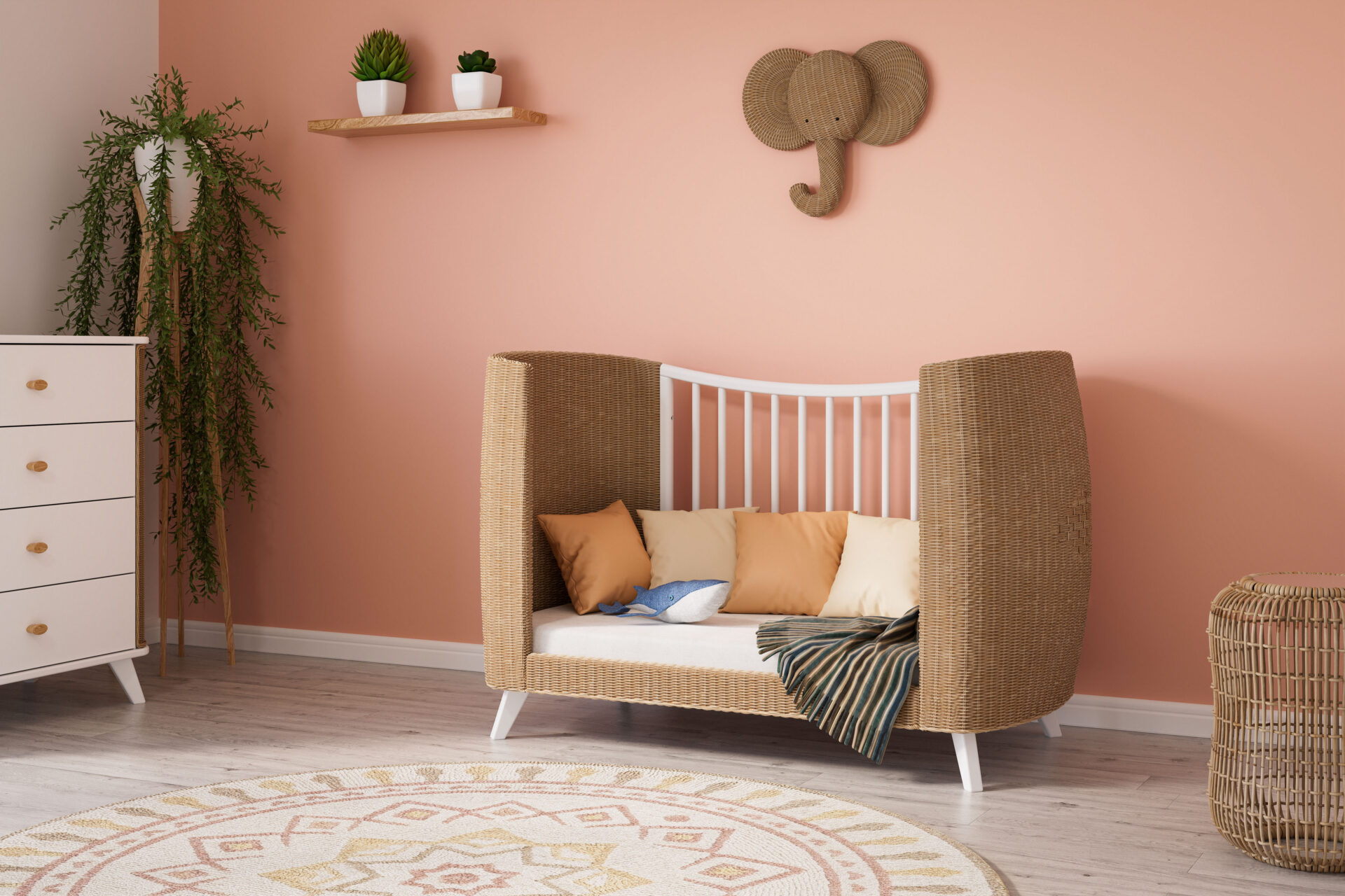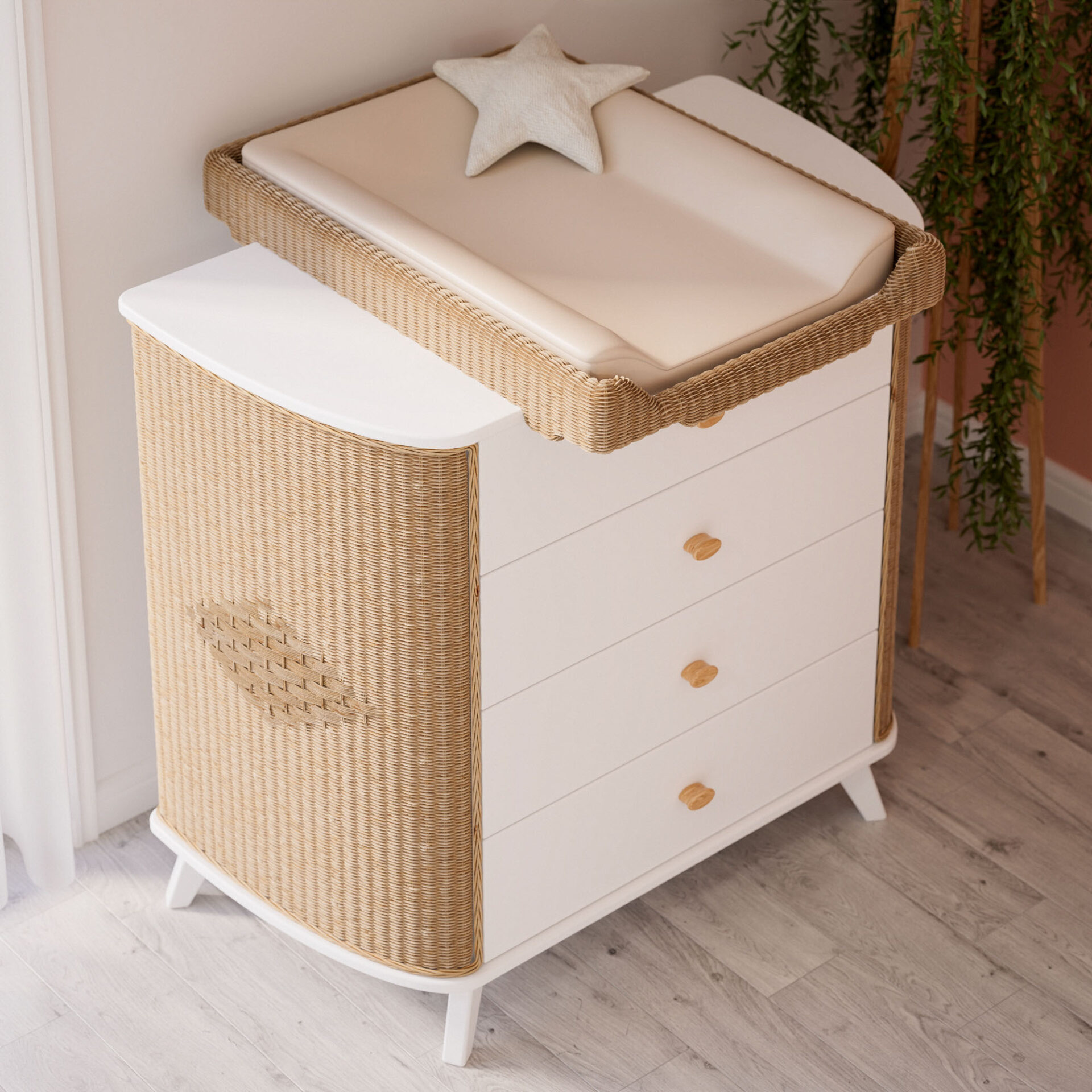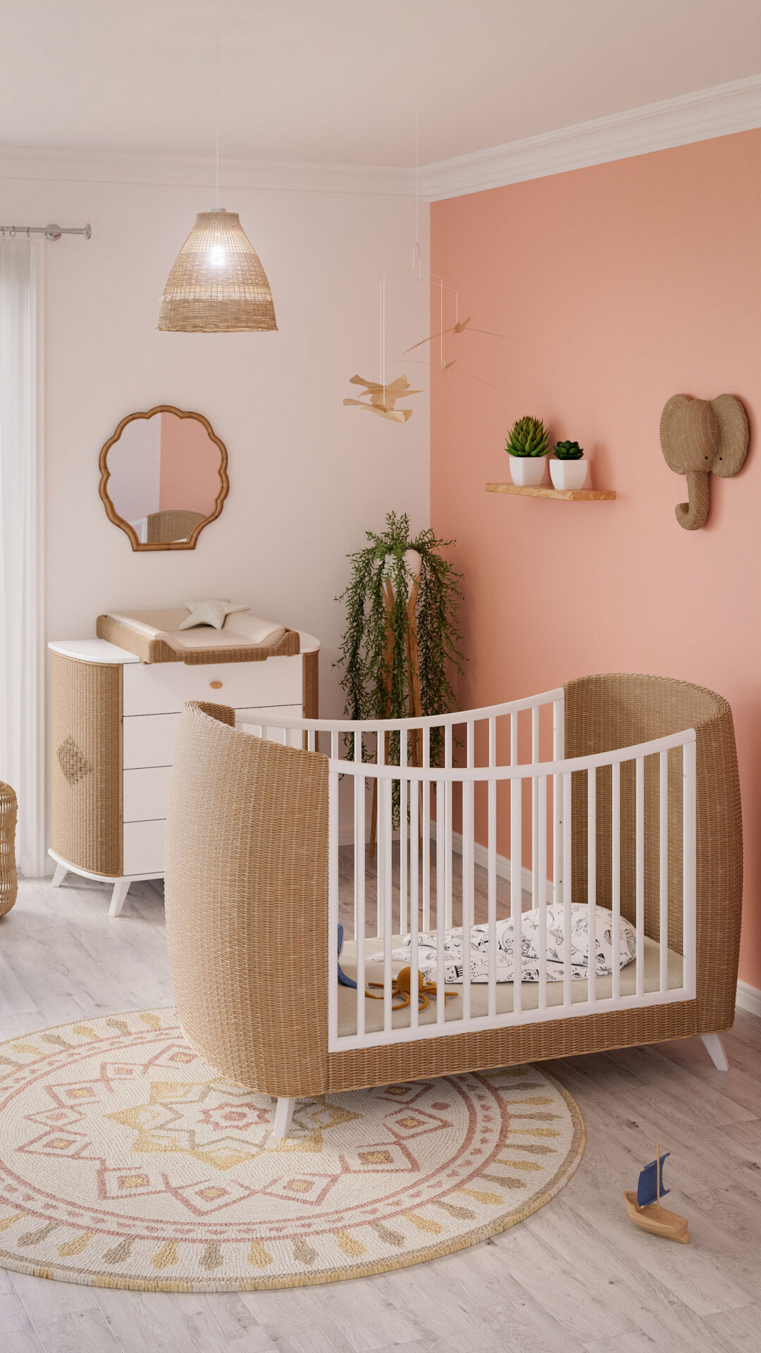 Babykamer Coquillage met ledikant 60 x 120 cm en commode met bladvergroter