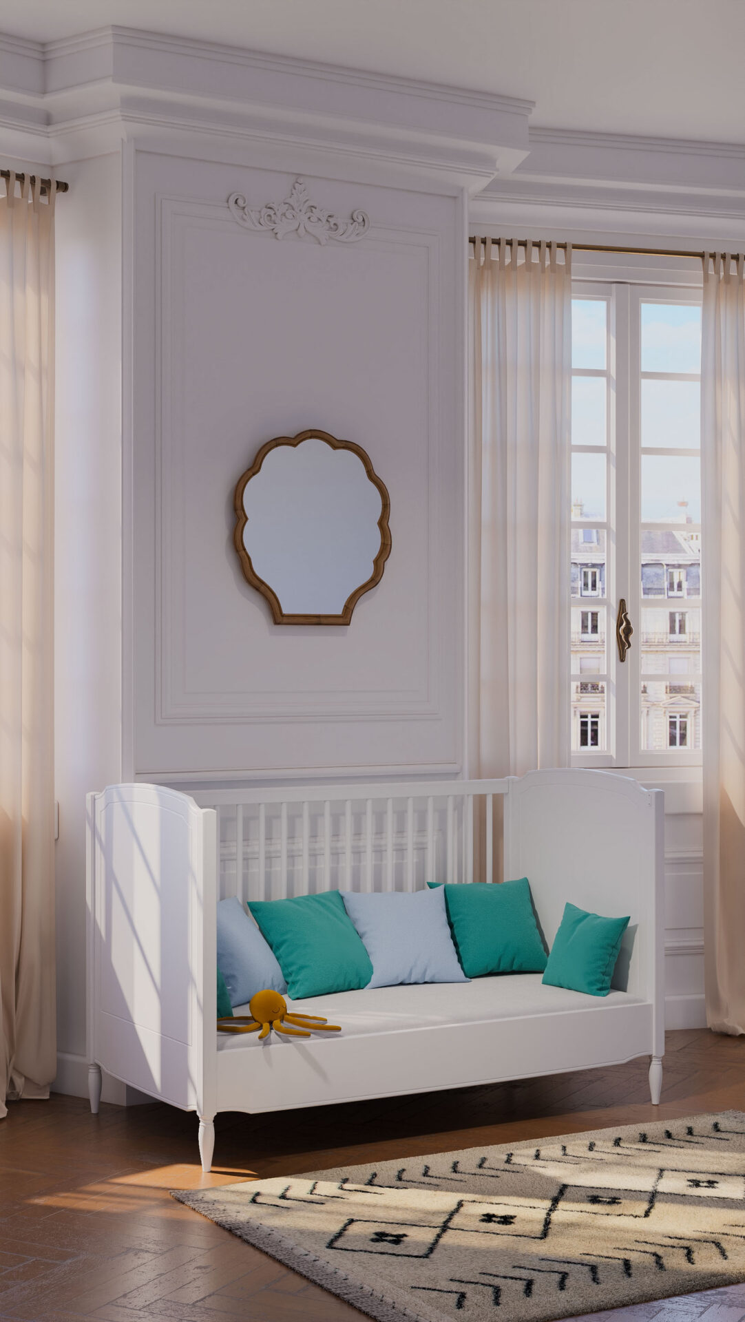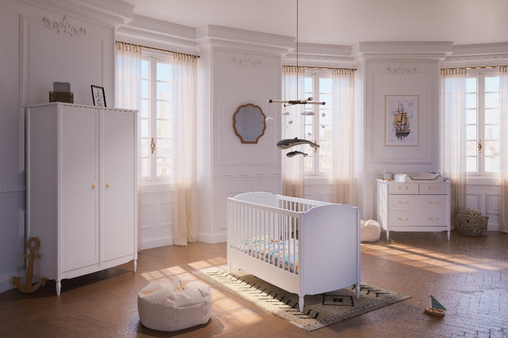 Het meubilair waaruit deze kamer bestaat, is gemaakt van massief hout met messing handgrepen en roestvrijstalen hardware. De panelen zijn gemaakt van mdf geverfd met verf op waterbasis, zonder oplosmiddelen die ervoor zorgen dat je kind comfortabel en veilig slaapt.
