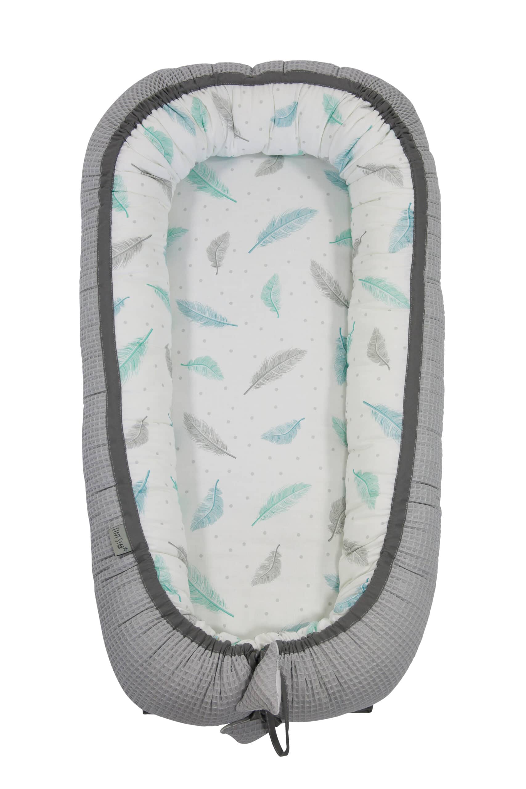 Babynestje Tiny Star is gemaakt van Cotton-waffel stof – ademend en natuurlijk – 100% katoen. Het binnenkant en de zijkanten zijn gevuld met veerkrachtige, antiallergische polyester van hoge kwaliteit.