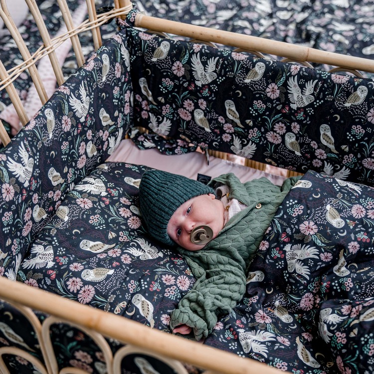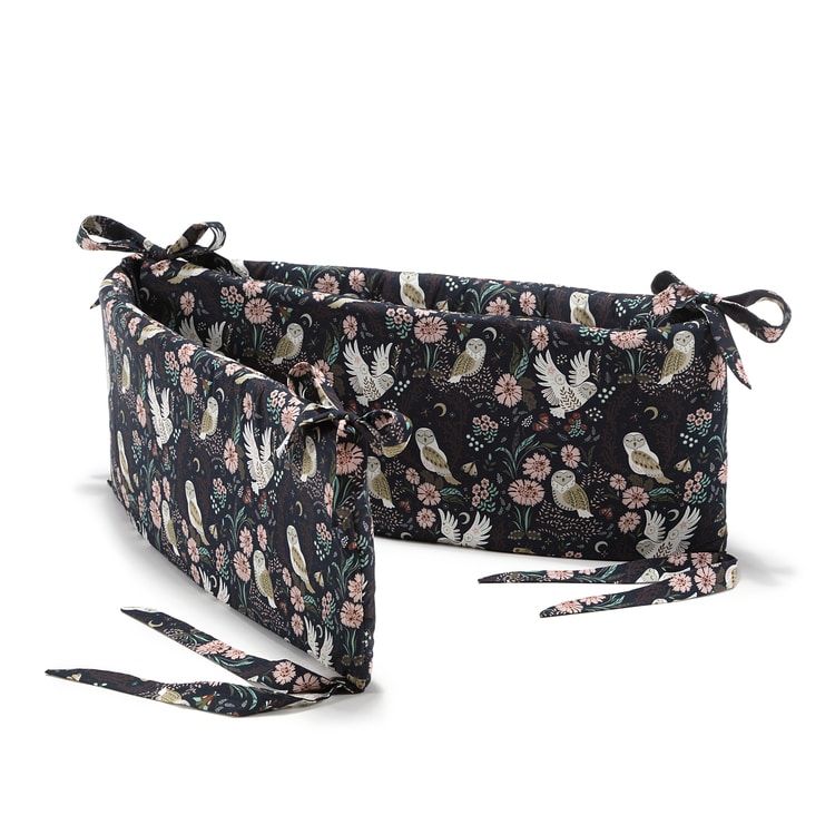 Deze La Millou Hoofdbeschermer is de ideale toevoeging aan de babykamer. Het zachte materiaal zorgt ervoor dat de baby zich niet kan bezeren tijdens het draaien in de ledikant of wieg. Zodoende kan het heerlijk vrij bewegen zonder dat jij je zorgen hoeft te maken.De bedbumper heeft een vulling van polyester zodat deze altijd rechtop staat. Uiteraard is het wel aan te raden de bedomrander aan de spijlen vast te maken met de strikjes, zodat het niet kan gaan schuiven. De print is aan beide zijden van de bedbumper aangebracht om de kamer een vrolijke impuls te geven.