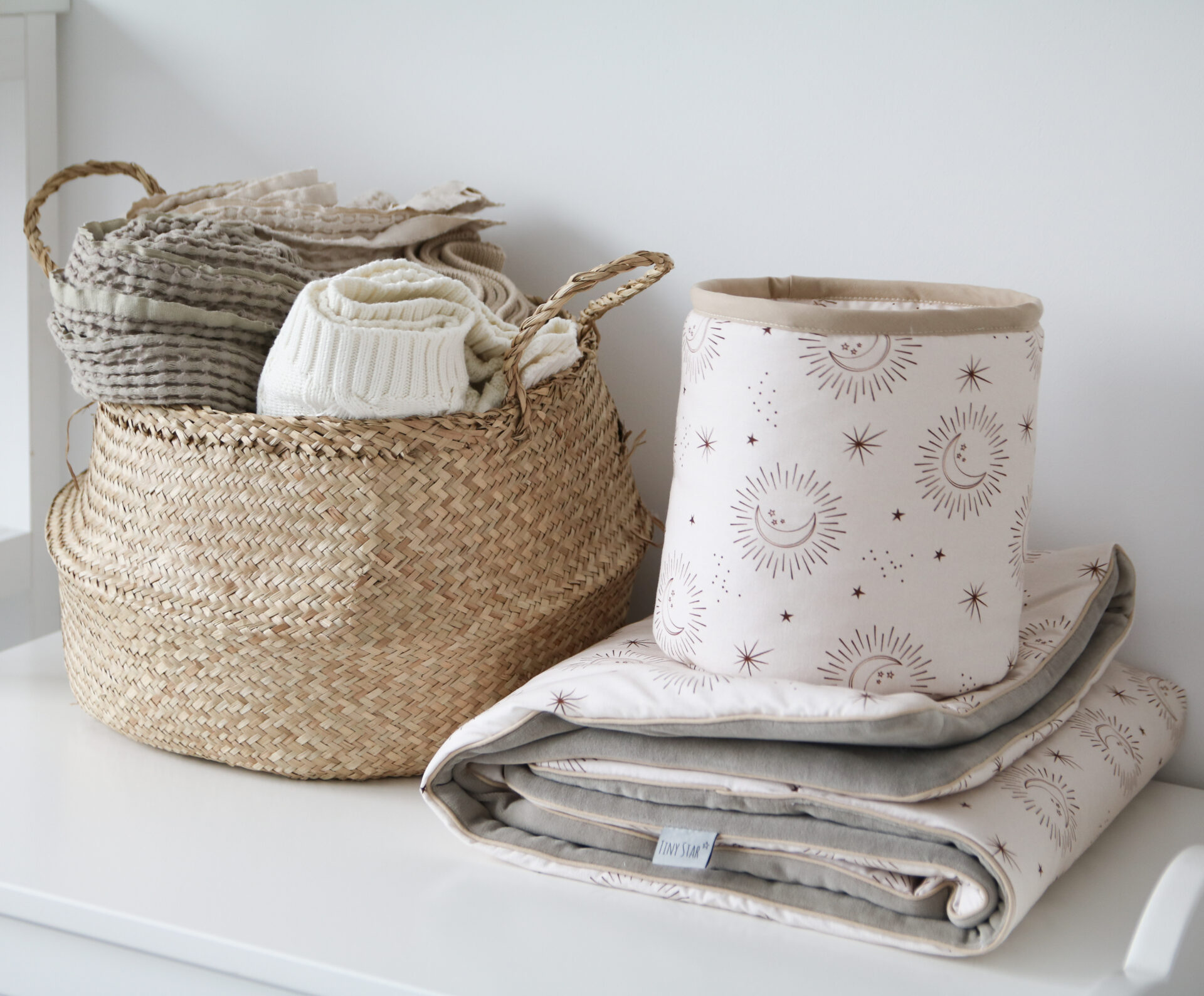 Dit leuke mandje uit de katoen collectie van Tiny Star is een handige accessoire voor de kinderkamer. Berg al je luiers, verzorgingsproducten, hydrofiele doeken en speelgoed eenvoudig op in dit leuke mandje van Tiny Star!