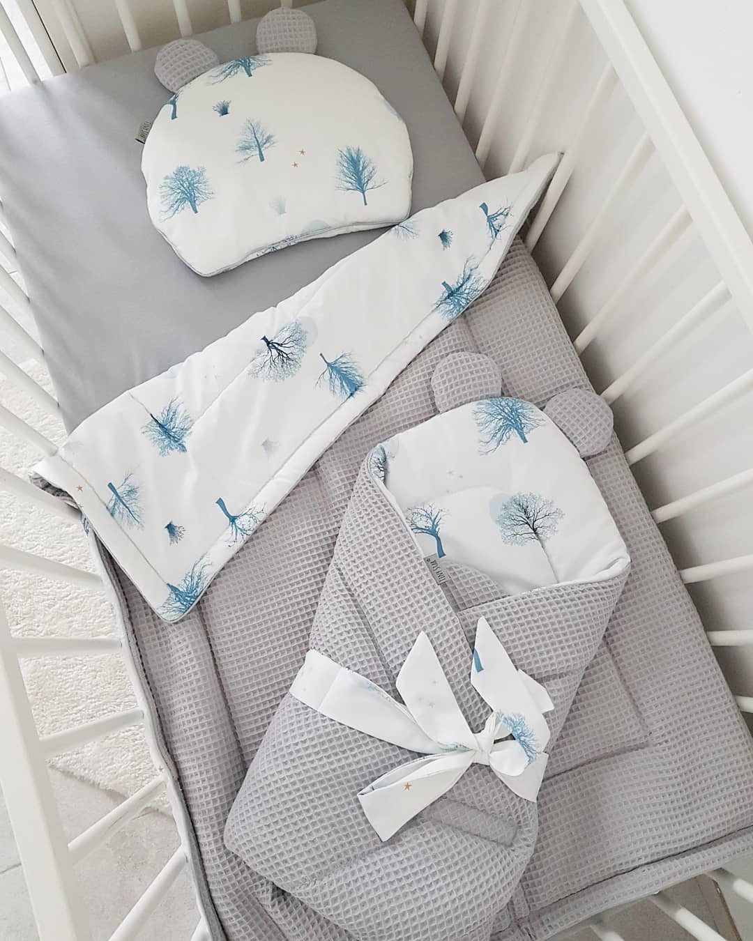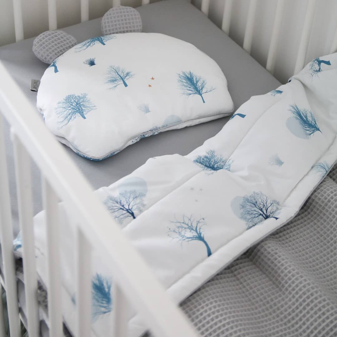 Onze nieuwste Sweet-collectie is een serie standaard babyproducten in een niet-standaard, “lichte” editie 🙂 Het afgeronde kussen met oren werkt geweldig als een hoofdkussen in een kinderwagen, commode, rocker, babybed of schommel. Praktisch ook wanneer u de baby in zijn armen houdt – het vergemakkelijkt het handhaven van een comfortabele positie ter ondersteuning van het hoofd van de pasgeborene. Het platte oorkussen is geschikt voor baby’s als kinderwagenkussen. Het zachte kussen onder het hoofd absorbeert schokken die worden veroorzaakt door het rijden op oneffen grond. Op deze manier vermindert het het risico dat de baby wakker wordt en zorgt het voor een goede nachtrust tijdens het lopen. Dankzij de charmante, wafeloren, werkt het ook als een favoriet knuffelbed om te slapen en te rusten. Oudere kinderen zullen aangenamer zijn met de tijd van rijping op een kinderdagverblijf of kleuterschool. Het universele formaat maakt het een ideale keuze voor zowel baby als kleine kleuter. Opgedragen aan kinderen van 0 tot 4 jaar oud. Het kussen van Sweet katoen is gevuld met een platte siliconen niet-geweven stof, waardoor het hoofd van het kind er niet in valt. Gemaakt van zacht katoen, afgewerkt met een stijlvolle inzet aangepast aan het patroon. Het geheel is precies aan elkaar genaaid, wat betekent dat het kussen kan worden gewassen in een wasmachine, op 30 graden Celsius en centrifugeren 800 omw / min. Deze vorm van zorg is zeer comfortabel en hygiënisch. Door het hele product te wassen, weet je zeker dat niet alleen de bovenkant, maar ook het midden van het kussen schoon is, vrij van stof en mijten. Dit is vooral belangrijk voor baby’s en jonge kinderen met allergische neigingen. Kussens met oren gaan mooi samen met geïsoleerde wafeldekens uit de Cottonwaffel-serie en onze gebreide bamboe- en katoenen dekens. Door een deken in hetzelfde patroon als het kinderwagenkussen te kiezen, kunt u een unieke babywiegenset of beddengoed voor kinderbedden samenstellen.