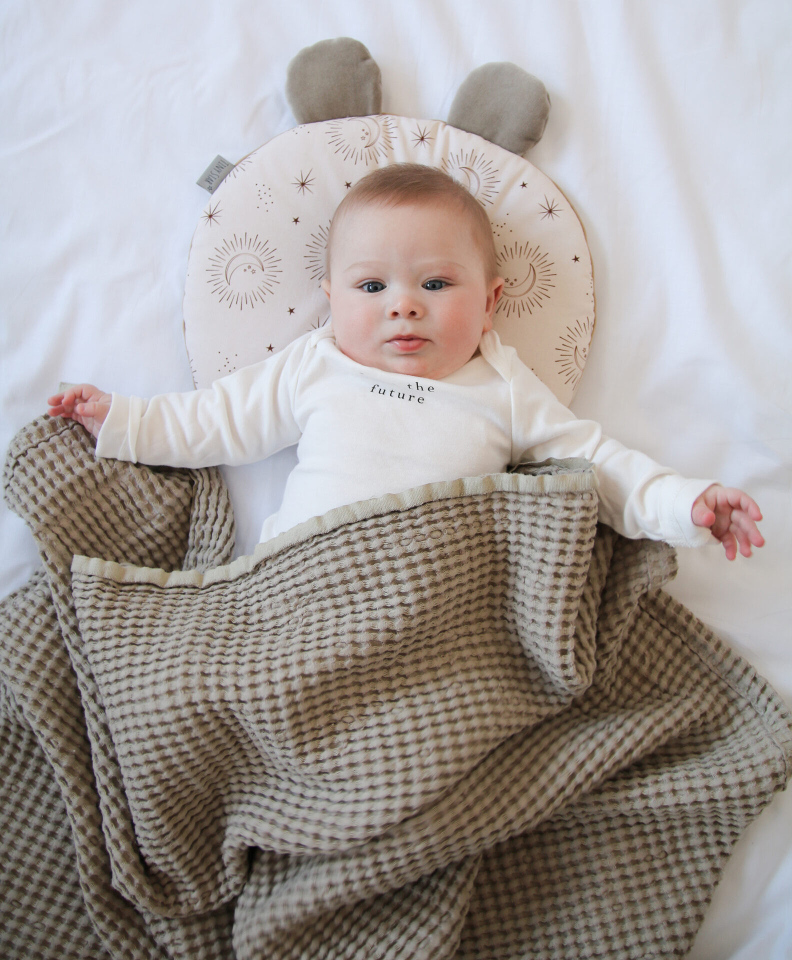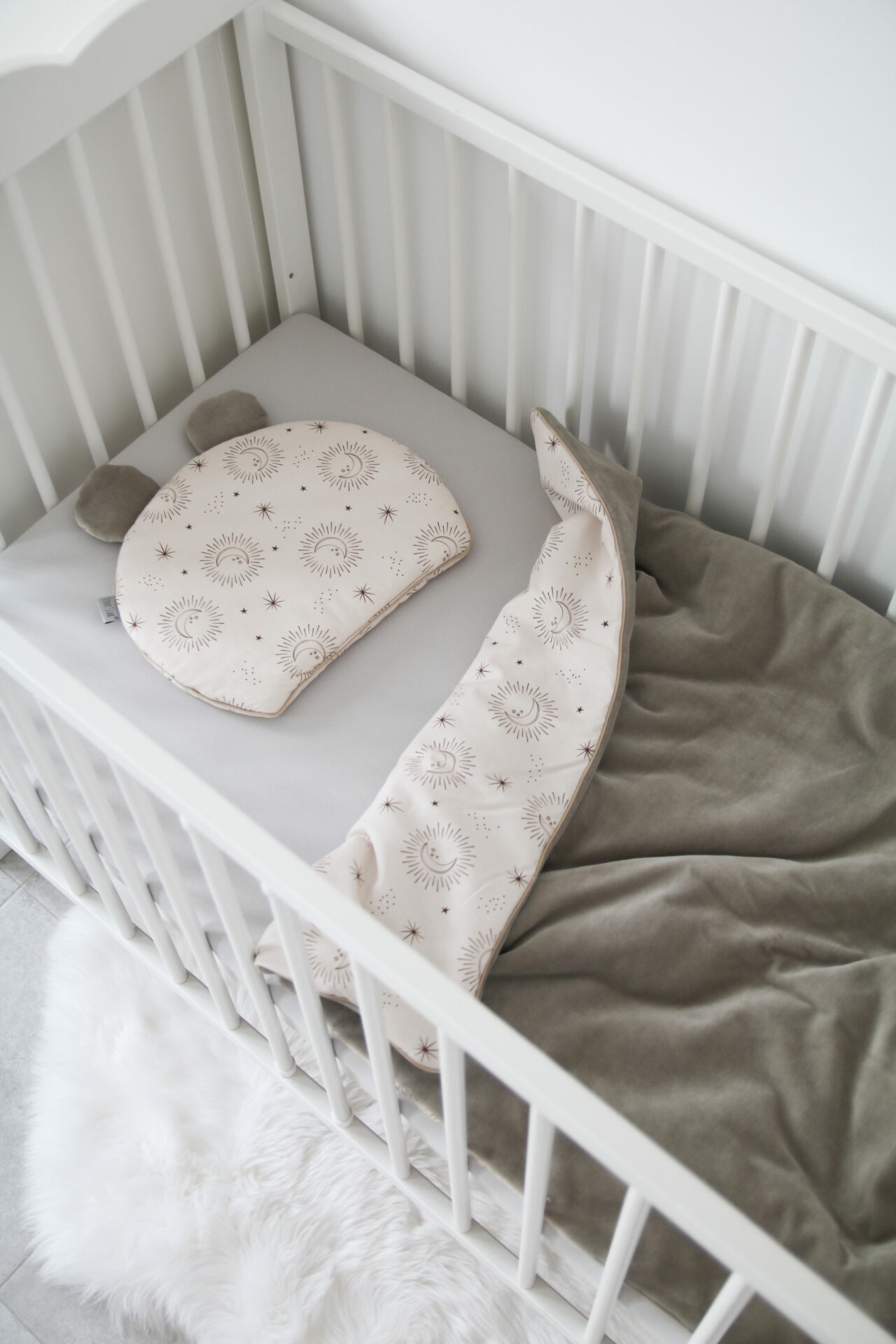 Onze nieuwste Sweet-collectie is een serie standaard babyproducten in een niet-standaard, “lichte” editie Het afgeronde kussen met oren werkt geweldig als een hoofdkussen in een kinderwagen, commode, rocker, babybed of schommel. Praktisch ook wanneer u de baby in zijn armen houdt – het vergemakkelijkt het handhaven van een comfortabele positie ter ondersteuning van het hoofd van de pasgeborene. Het platte oorkussen is geschikt voor baby’s als kinderwagenkussen. Het zachte kussen onder het hoofd absorbeert schokken die worden veroorzaakt door het rijden op oneffen grond. Op deze manier vermindert het het risico dat de baby wakker wordt en zorgt het voor een goede nachtrust tijdens het lopen. Dankzij de charmante, wafeloren, werkt het ook als een favoriet knuffelbed om te slapen en te rusten. Oudere kinderen zullen aangenamer zijn met de tijd van rijping op een kinderdagverblijf of kleuterschool. Het universele formaat maakt het een ideale keuze voor zowel baby als kleine kleuter. Opgedragen aan kinderen van 0 tot 4 jaar oud. Het kussen van Sweet katoen is gevuld met een platte siliconen niet-geweven stof, waardoor het hoofd van het kind er niet in valt. Gemaakt van zacht katoen, afgewerkt met een stijlvolle inzet aangepast aan het patroon. Het geheel is precies aan elkaar genaaid, wat betekent dat het kussen kan worden gewassen in een wasmachine, op 30 graden Celsius en centrifugeren 800 omw / min. Deze vorm van zorg is zeer comfortabel en hygiënisch. Door het hele product te wassen, weet je zeker dat niet alleen de bovenkant, maar ook het midden van het kussen schoon is, vrij van stof en mijten. Dit is vooral belangrijk voor baby’s en jonge kinderen met allergische neigingen. Kussens met oren gaan mooi samen met geïsoleerde wafeldekens uit de Cottonwaffel-serie en onze gebreide bamboe- en katoenen dekens. Door een deken in hetzelfde patroon als het kinderwagenkussen te kiezen, kunt u een unieke babywiegenset of beddengoed voor kinderbedden samenstellen.
