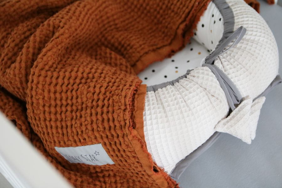 - Gebruik – de dekens zijn iets groter dan onze standaarddekens. We raden ze daarom aan voor kinderen van 0 tot 6 jaar oud. De katoen-linnengaren zorgen voor optimale warmte en thermoregulerende en anti-allergische eigenschappen. Het verwarmt als het koud is. En als het warm is, heeft het een licht verkoelende werking. Het wafelkatoen zorgt ervoor dat de stof dik en vlezig aanvoelt, en tegelijkertijd licht en rekbaar. Het heeft een uitstekende luchtdoorlaatbaarheid, de babyhuid kan vrij ademen. Het wafeldeken geeft de baby warmte en beschermt tegelijkertijd tegen oververhitting en zweten.