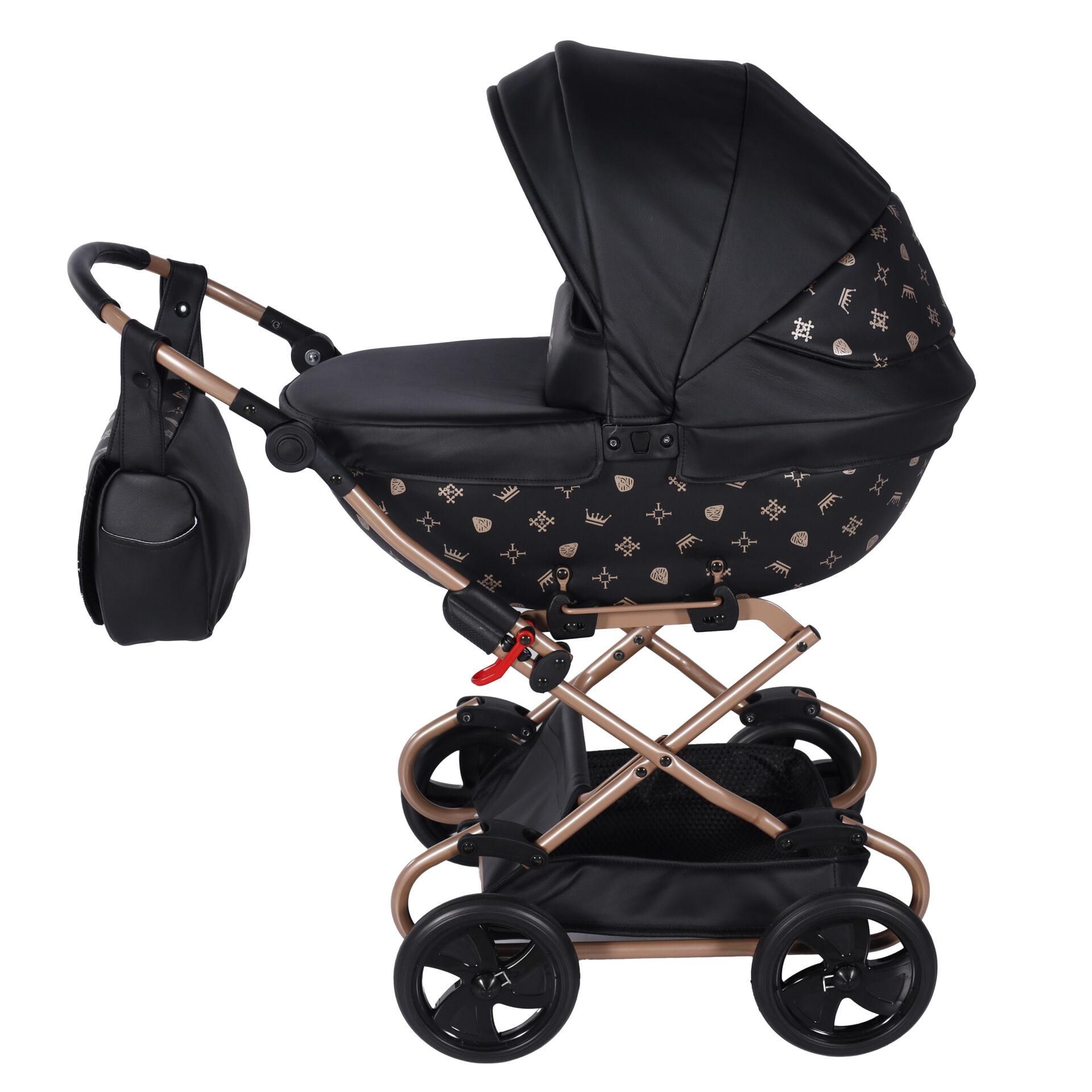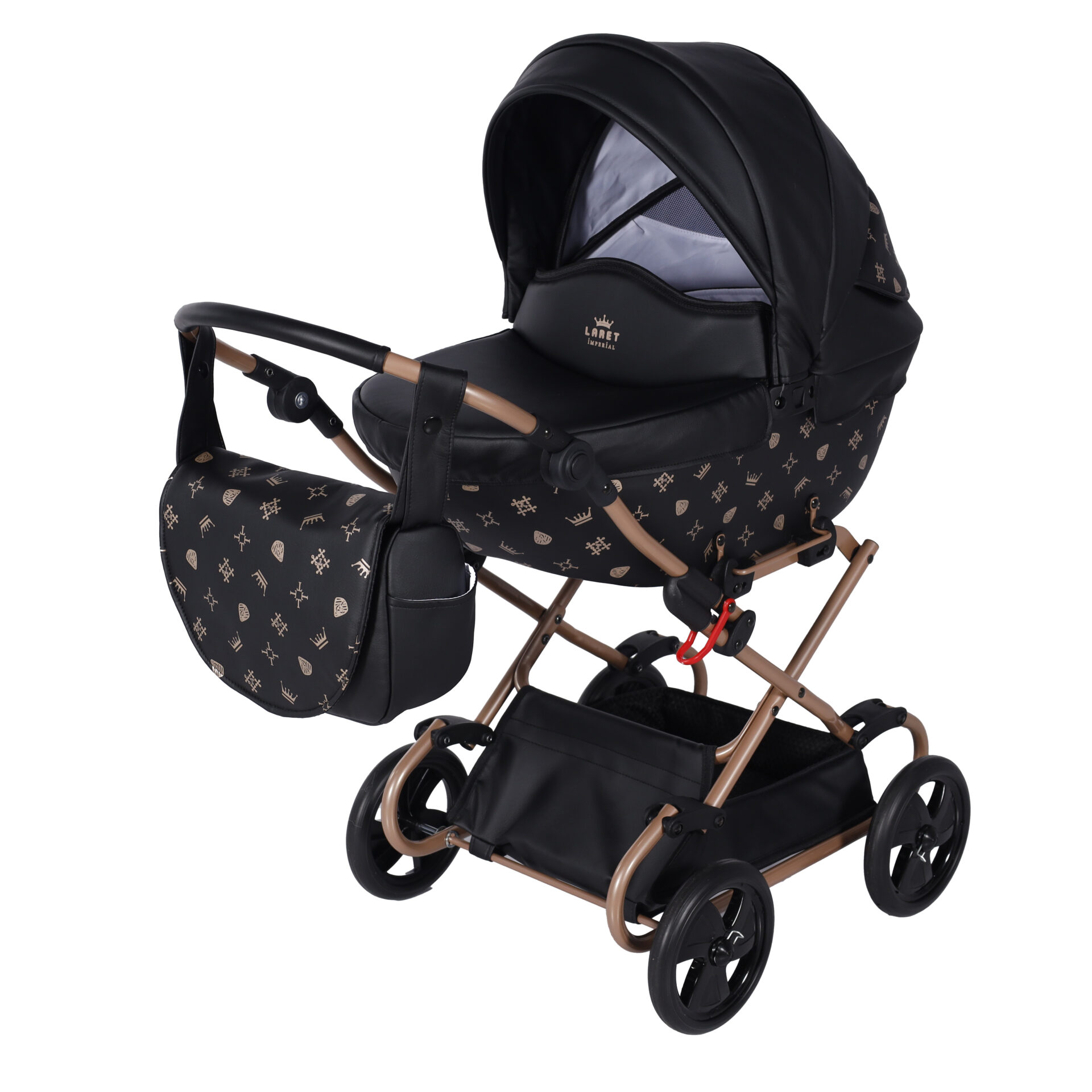 TAKO poppenwagen Laret Imperial is een modern zwarte ECO LEER kinderwagen.