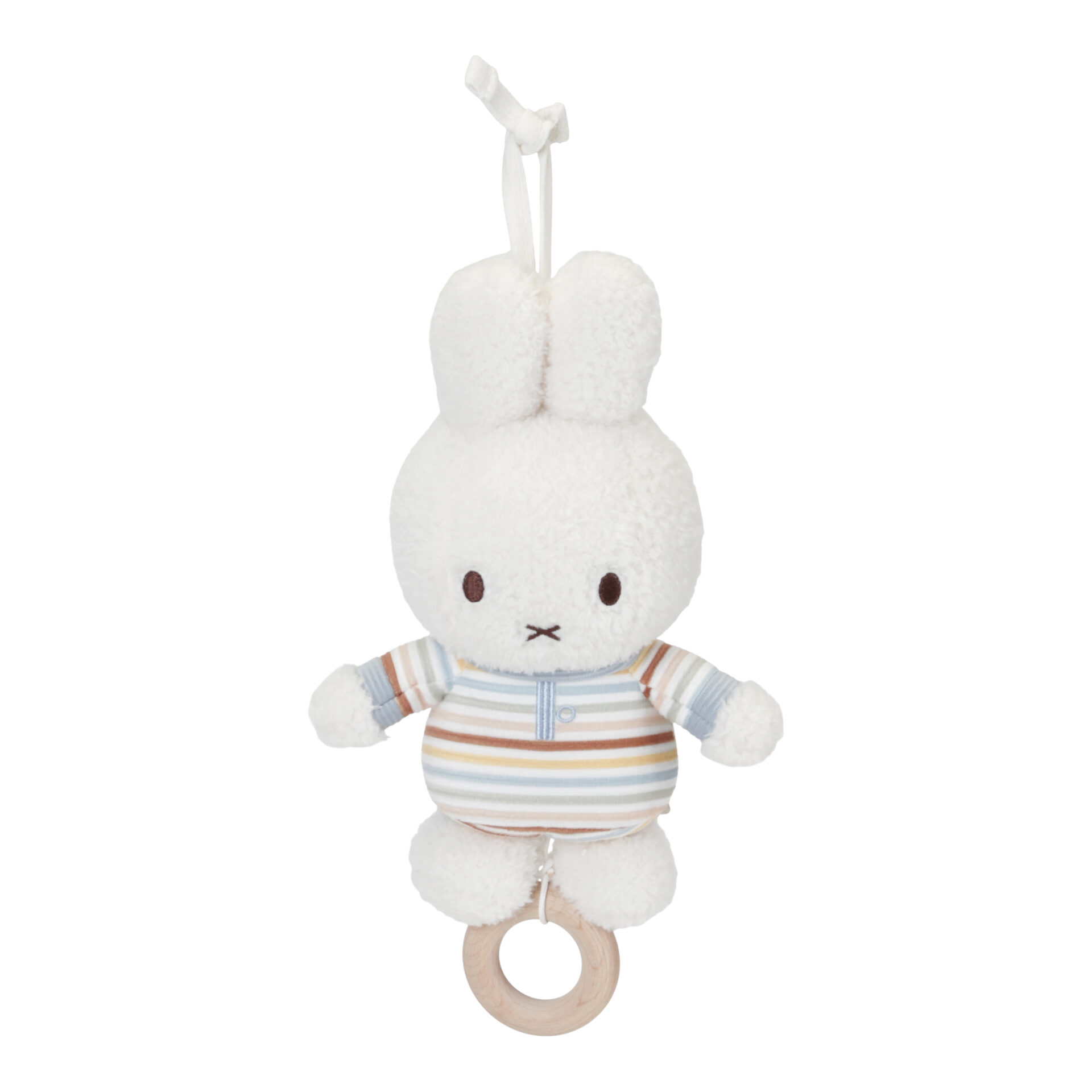 Wil je een slaapliedje horen? Trek aan het touwtje en Nijntje begint te zingen! Als deze schattige kleine Nijntje muziekdoos een liedje voor je speelt zal het je helpen kalmeren, ontspannen en in slaap te vallen. Het iconische konijntje is gekleed in Vintage Sunny Stripes van Little Dutch en zal prachtig staan ​​in de babykamer. De muziekdoos is makkelijk te bevestigen aan box, ledikant of dressoir. Maar houd dit Nijntje altijd buiten bereik van je kleintje.