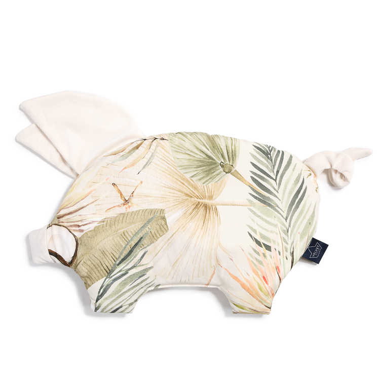 Ideaal voor in bed. Het kan ook worden gebruikt voor dutjes in een wieg. Vakkundig gevuld: redelijk vlak, maar zacht en comfortabel onder het hoofd. De oren van het varkentje en de grappige, gekrulde staart zijn een knuffelmagneet. Patroon met al onze populaire ontwerpen. Een wandeling met ons varken zorgt voor een goede nachtrust voor uw kind en voor een beetje tijd voor mama … Het product dient onder toezicht van een volwassene gebruikt te worden.