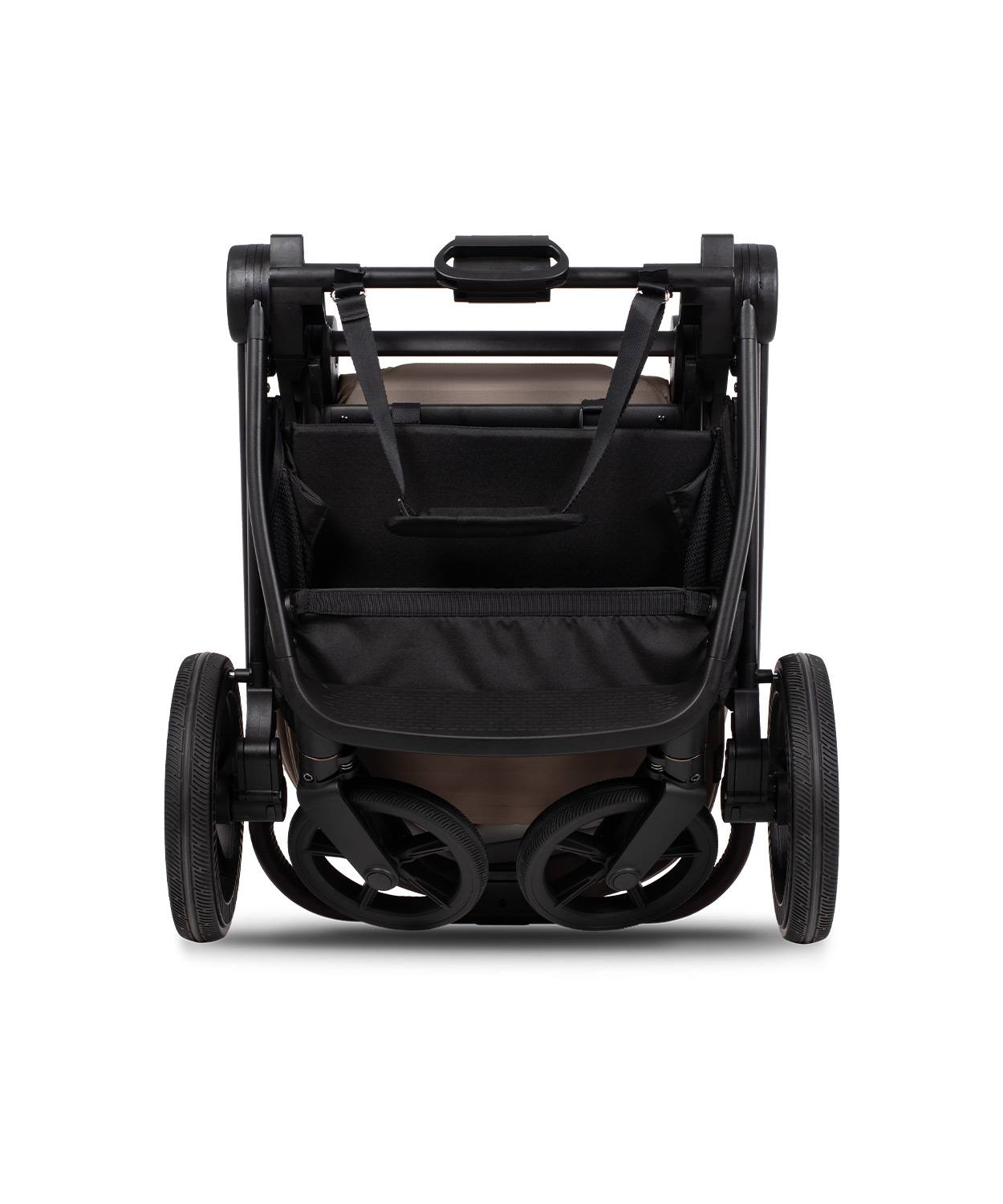 Met het One Hand System vouw je de kinderwagen eenvoudig in en uit met slechts één hand. Ideaal voor ouders die vaak multitasken of snel moeten handelen. Dankzij het compacte ontwerp en de handige draagriem kun je de kinderwagen gemakkelijk over je schouder dragen, perfect voor trappen of smalle doorgangen.