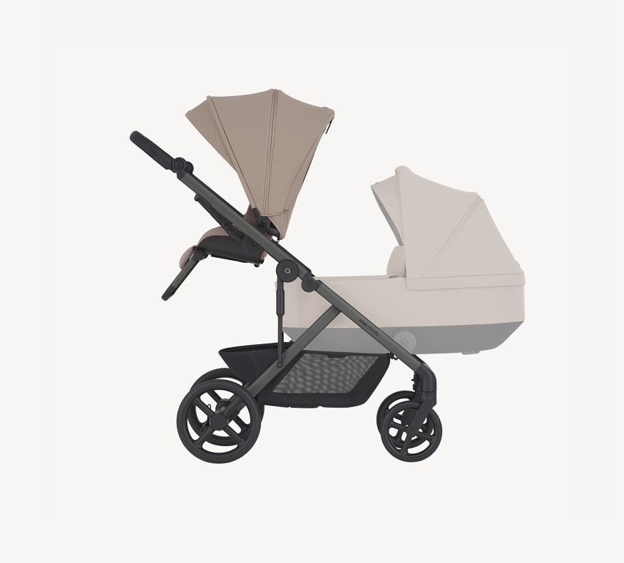 De Modu-zitgedeelte ondersteunt elke fase — rechtop voor nieuwsgierige blikken, achterover voor dutjes onderweg.